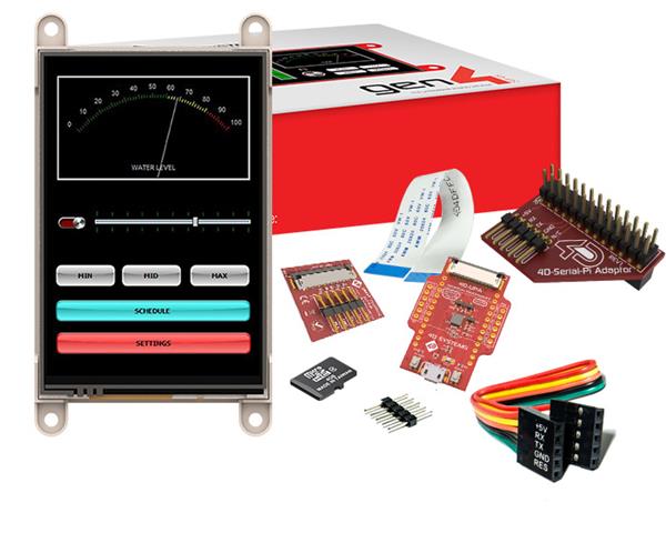 4D Systems SK-gen4-35D-PI Display Development Tools Starter Kit for gen4-uLCD-35D-PI with 4D Serial Pi Adaptor, 4D-UPA, 4GB Industrial microSD Card, 150 mm FFC Cable, 5-way female-to-female ribbon cable with male-to-male adaptor