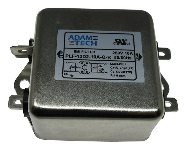 Adam Tech PLF-12D2-10A-Q-R Power Line Filters EMI/RF Line Filter, 115/250VAC 10A, medium outline, chassis mount | EMIN.CO.ID
