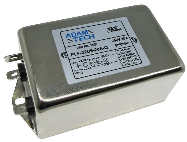 Adam Tech PLF-22D6-20A-Q Power Line Filters EMI/RF Line Filter, 115/250VAC 20A, medium outline, chassis mount | EMIN.CO.ID