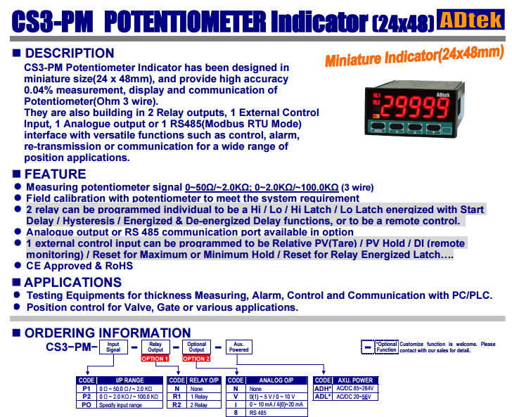 CS3-PM Potentiometer Indicator has been designed in