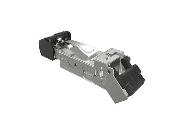 Amphenol Canada DRP10188400011 Modular Connectors / Ethernet Connectors Plug, Cat6A, Industrial RJ45, 45 deg , thermoplastic, 22-23 AWG, 30u"gold , with cover