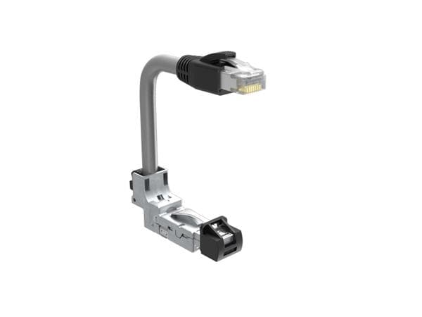 Amphenol Canada DRPC31B005A10 Modular Connectors / Ethernet Connectors Cable, Cat6A, Industrial RJ45, 90 deg bottom exit to standard RJ plug, 26AWG, 2.0m, gold flash