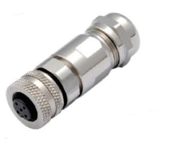 Amphenol Industrial HDM12PF04DSTMC Straight MaxM12, Female Straight Plug, 4 female socket contacts, D code, crimp contacts, without dust cap, RoHS compliant