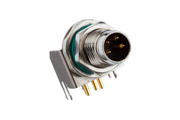 Amphenol LTW M8S-03PFFR-SF8001 Right Angle M8 Circular Metric Connector, A Code, Metal, 3A, 03 pins, Female Connector, Female Contact, Hexagonal, M10*0.75, Screw Thread, PCB 90 , Receptacle, Front Fastened, IP68 Unmated