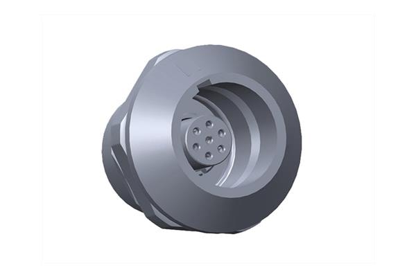 Amphenol LTW SLKB-07EGFS-GSP-001 Circular Push Pull Connectors FLOS+, K Series B Size, Metal, 2.5A, 07 pins, Female Connector, Female Contact, Straight, Push Pull, Solder, Receptacle, Rear Fastened, Panel Thickness 6, IP68