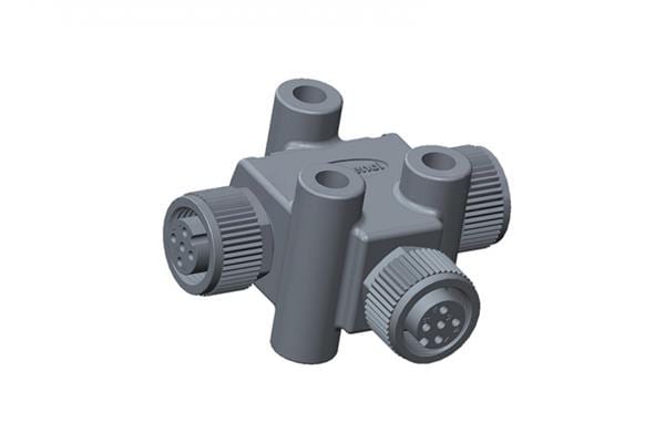 Amphenol LTW TA-A06F-A06F-A06F-01 T-Adapter Circular Metric Connector, T Adaptor, Metal, A Coding, 2A, 06 pins, (End 1) Female Female, (End 2) Female Female, (End 3) Female Female, Screw Thread, IP68 Mated