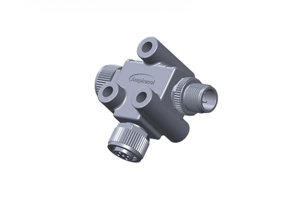 Amphenol LTW TA-A10F-A10F-A10M-01 T-Adapter Circular Metric Connector, T Adaptor, Metal, A Coding, 1.5A, 10 pins, (End 1) Female Female, (End 2) Male Male, (End 3) Female Female, Screw Thread, IP68 Mated