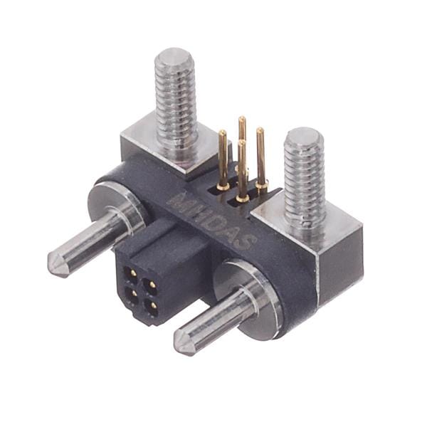 Amphenol Socapex MHDAS2M004YCE11 Connectors Micro HDAS 4 male right angle pc tail contacts4 position pin 1.27 mm 2 row right Angle