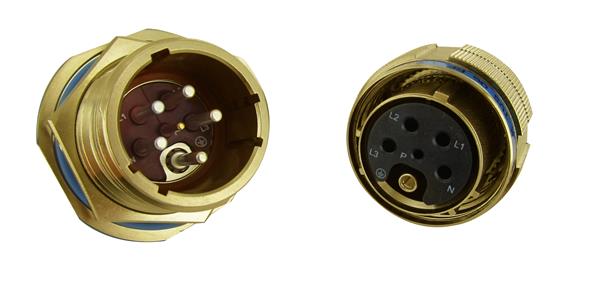 Amphenol Socapex TVS07RB13E4P Receptacles Rugged power connector up to 63 Amps dedicated to user safety, based on MIL-DTL-38999 series III shells