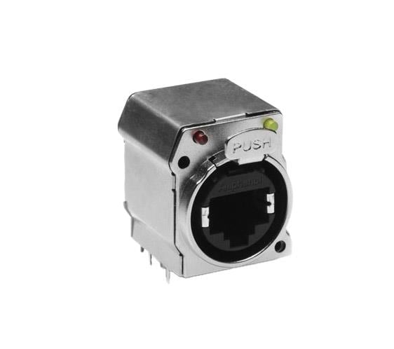 Amphenol Tuchel RJX8FB6HGYEB XLR XLRnet B Type Ethernet Chassis Mount, Horizontal PCB, CAT6, Shielded, LED Sequence Green/Yellow, Bulk Packaging