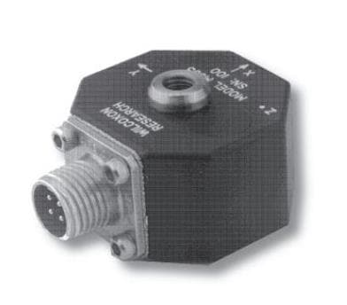 Amphenol Wilcoxon 993A Acceleration Sensor Modules Side exit, triaxial, case isolated, 1/4-28 captive screw, 4 pin Bendix #PC01A-8-4P (p/n R9W), 100 mV/g, +/-10% sensitivity tolerance | EMIN.CO.ID
