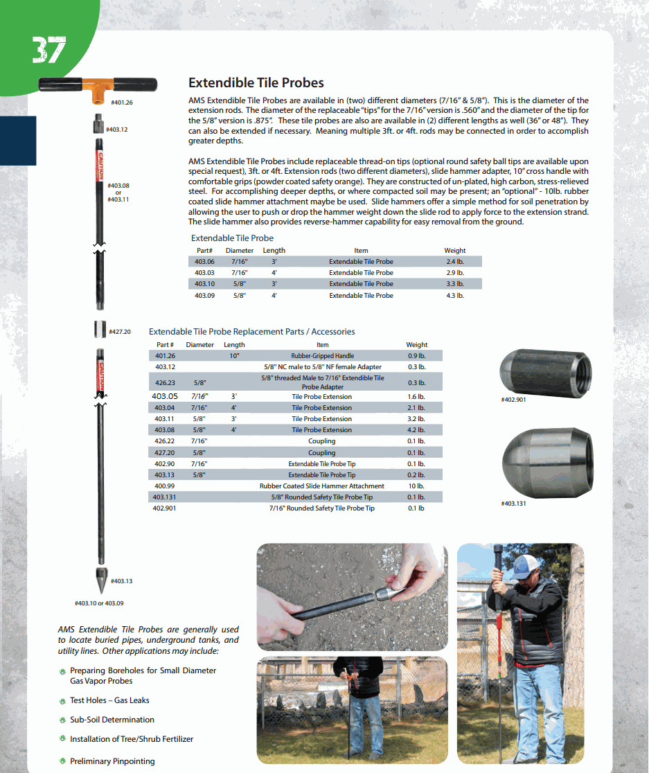 AMS 403.09 5/8" X 4' Extendible Tile Probe Complete | EMIN.CO.ID
