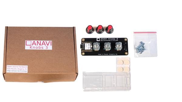 ANAVI Technology CS-ANAVI-K3 Development Boards & Kits - ARM A human input device with 3 clickable rotary encoders. Has USB-C, RP2040 MCU, and IC slot. Includes enclosure, screws, nuts.