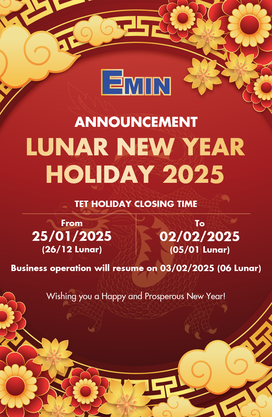 ANNOUNCEMENT OF 2025 HOLIDAY SCHEDULE | EMIN.CO.ID