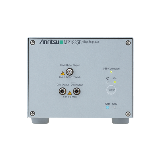 The MP1825B 4Tap Emphasis is a 4-tap pre-emphasis converter for bit rates up to 32.1 Gbit/s; it supports easy changes to the pre-emphasis waveform amplitude, offset, amplitude of each tap, etc., for effective evaluation of the characteristics of high-speed interfaces.