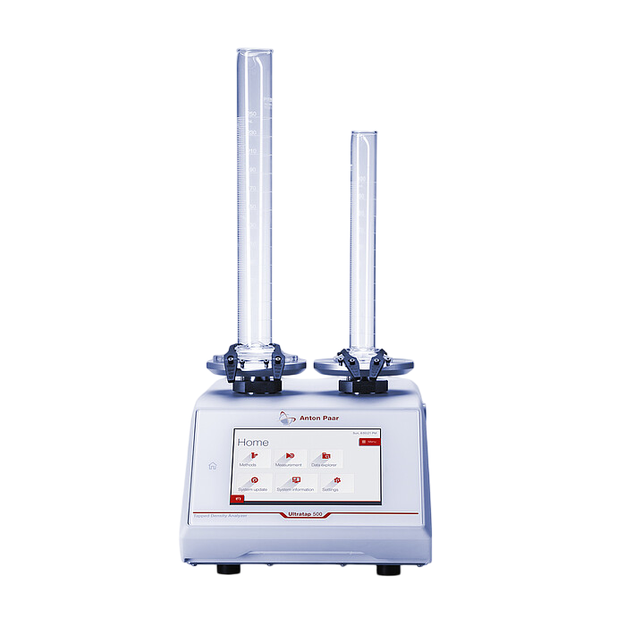 Built-in calculations: Bulk density, Carr’s compressibility index, Hausner ratio, tapped density