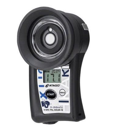 The Brix (sugar level) can be measured by placing the fruit on the sample stage with no need of cutting or squeezing. It requires no more cumbersome wiping and cleansing after each measurement.