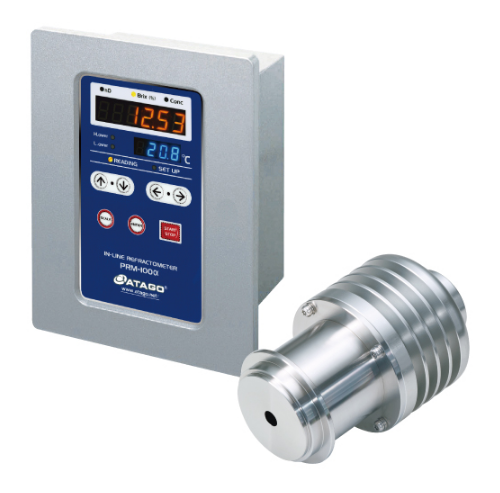The DX series has succeeded in reducing the weight while maintaining the performance of the PRM-100α. The sophisticated and compact silver housing contributes to the SDGs by saving resources.By installing the PRM-100α DX to the pipe line of manufacturing plants for liquid products such as food and medicine, various industrial liquid, cleaning/washing machine , dilution/mixing/blending machine, it can measure the refractive index, Brix%/concentration, moisture, and mixing ratio of various solutions.
