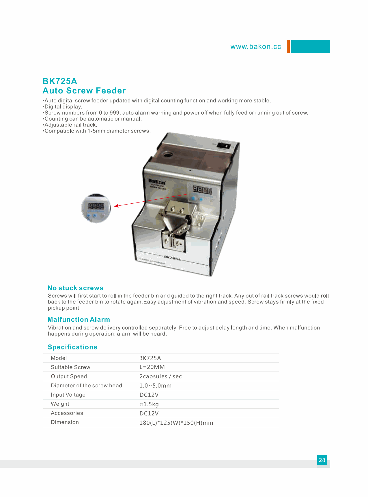 Bakon BK725A Auto Screw Feeder (1.0-5.0mm) | EMIN.CO.ID