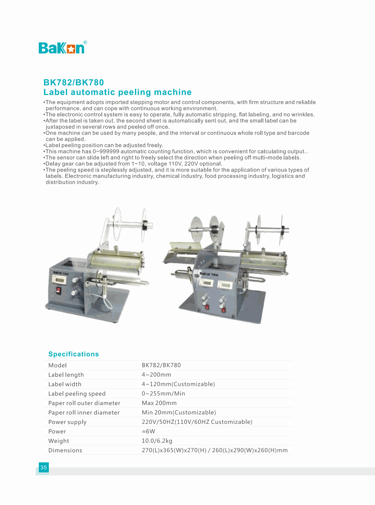 Bakon BK782 Label Automatic Peeling Machine (0-255mm/Min) | EMIN.CO.ID
