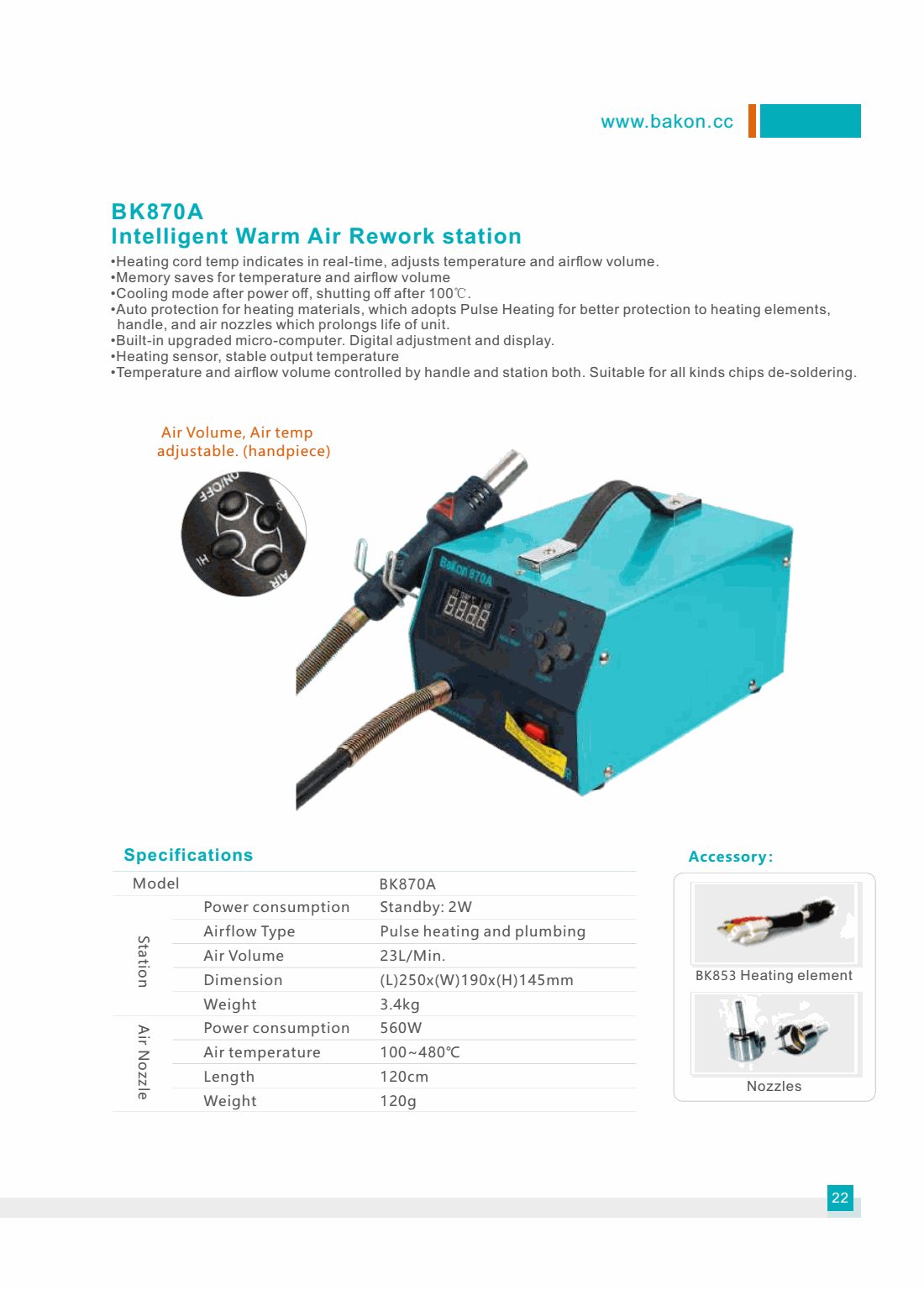 Bakon BK870A Intelligent Warm Air Rework Station (560W) | EMIN.CO.ID