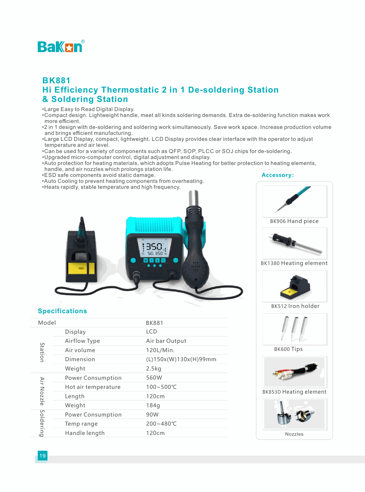 Bakon BK881 Hi Efficiency Thermostatic 2 in 1 De-soldering Station & Soldering Station (560W) | EMIN.CO.ID