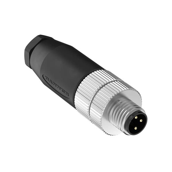 Banner Engineering BFW-M8M3-4X M8 Field Wireable Connectors Field Wireable: M8; 3-pin Straight Male; 24 AWG 3.5-5 mm Cable Range; Screw Terminal; PA+GF Black Body; Nickel-Plated Brass Coupling Nut