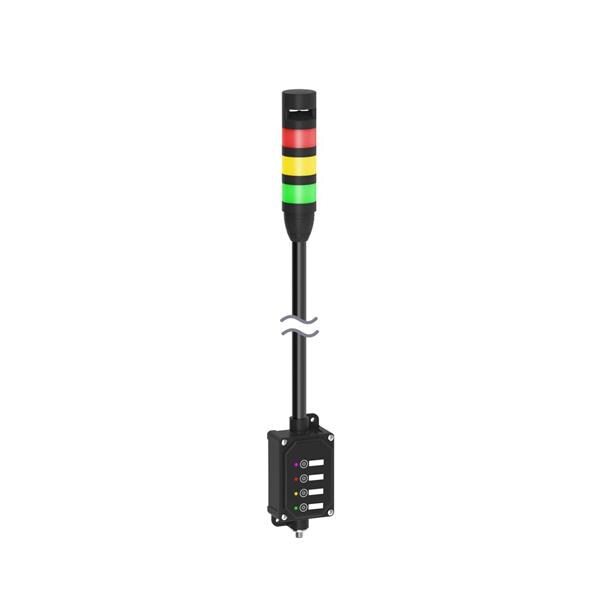 Banner Engineering LCA130T4-TL50GYRA900Q Tower Lights Andon Tower Light Assembly: 3-Color with Audible; Voltage: 18-30 V dc; Colors: Green Yellow Red; 5-pin M12 Integral QD; 4-Touch Control Module; 900 mm SOP