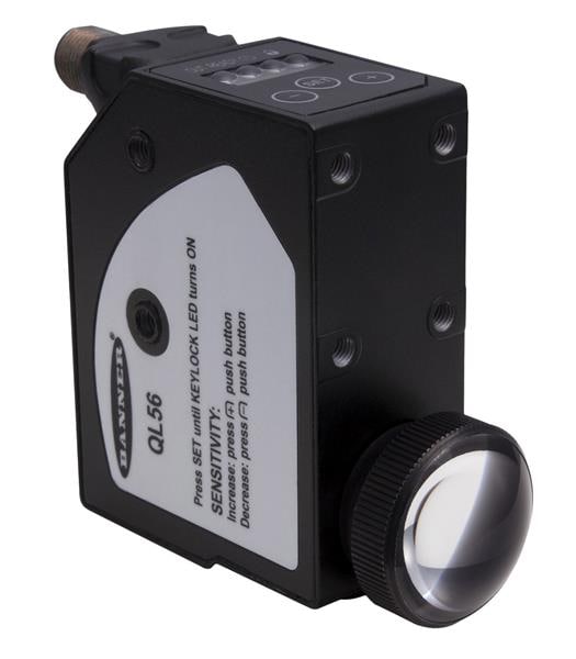 Banner Engineering QL56M6XD40BQ Photoelectric Sensors QL56 Series Luminescence Sensor; Range: 30-50 mm; Input: 15-30 V dc; Output: Bipolar (1 NPN and 1 PNP); 0.75-5.5 V analog; 5-pin M12 Integral QD