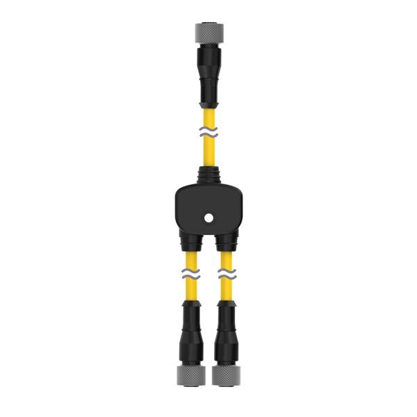 Banner Engineering SGSA-MCS-2 Sensor Hardware SGS Safety Grid System, Accessory Muting; Connection Cable for x and L Configuration; M12 QD Splitter Cable; 4-pin Straight Female 0.3 m (1 ft) Trunk; Two Straight 4-pin Female Branches 0.3 m (1 ft); Black Jacket; Nickel-Plated Brass Coupling Nuts