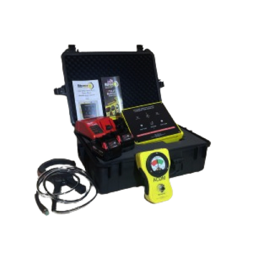The transmitter module is powered by two Milwaukee lithium-Ion M18 batteries and incorporates cam lock connectors to quickly interface different attachments such as C style, ball socket, and alligator clamps.
