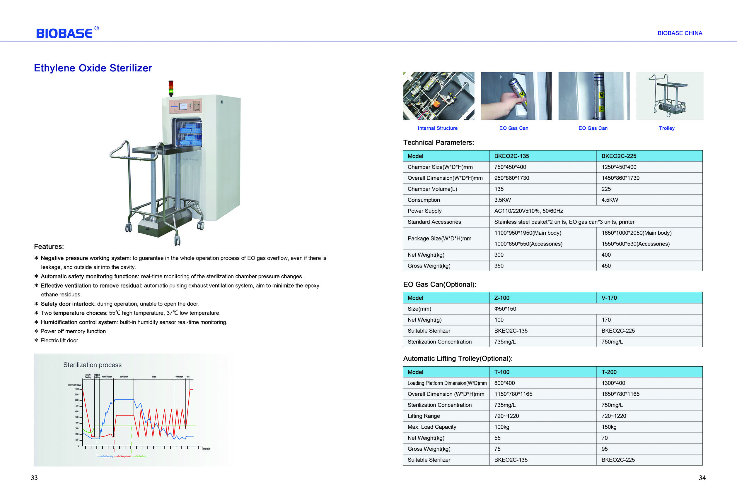 Standard Accessories: Stainless steel basket*2 units, EO gas can*3 units, printer