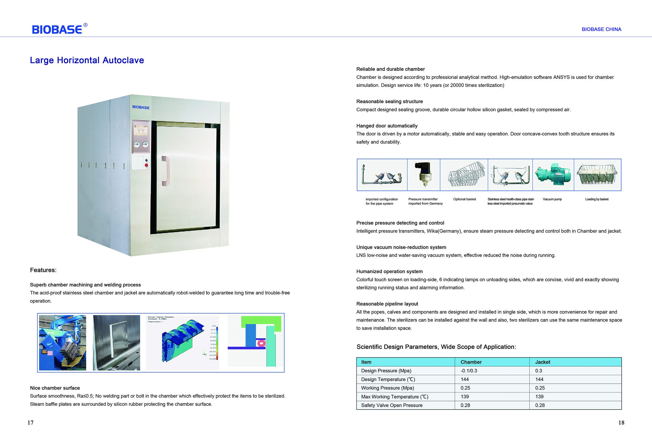 - Chamber is designed according to professional analytical method. Design service life: 10 years (or 20000 times sterilization)