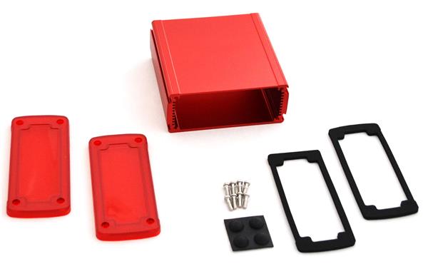 Bud Industries EXN-23357-RDP PCB Enclosure Extruded Aluminum Enclosure Red with Plastic Cover (2 X 4.5 X 4.7 In) | EMIN.CO.ID