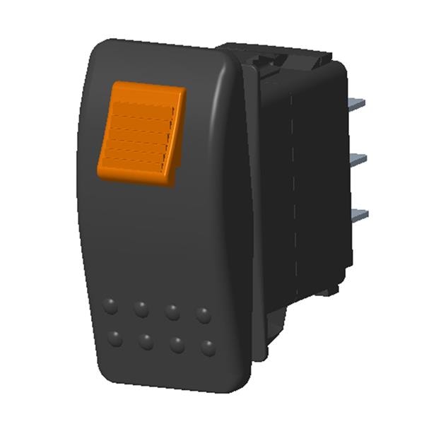 Carling Technologies VDD1SW0B-AZE00-0 Contura Sealed Rocker Switch 2-pole, ON - None - ON, 20A 12VDC not HP rated, Non-Illuminated, Sealed Locking, Contura II Rocker with Safety Orange lock, No Lens, and .250 Tab (Q.C.), 8 Terminal base