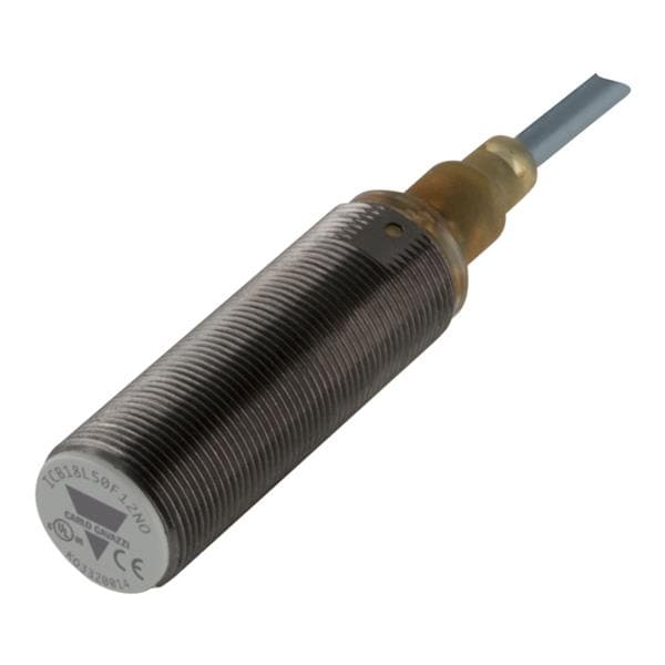 Carlo Gavazzi ICB18L50F12NC Proximity Sensors Inductive proximity sensor, M18 Nickel-Plated Brass, 2m cable, Sn 12mm, Quasi-flush mount, Long body, NPN NC output, Supply voltage 10-36Vdc, Max output current 200 mA, Max switching frequency 1,5 kHz, Operating temperature -25C - +70C, IP67
