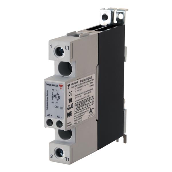 Carlo Gavazzi RGC1A60D32KGE Solid State Relays 1-pole DIN-rail mount SSR, E-layout, Zero-cross switching, Operating voltage (Ue): 42 - 660 Vac (1200 Vp), Rated current (Ie): 30 Aac, Control voltage (Uc): 4 - 32 Vdc, Built-in overvoltage protection, High I2t