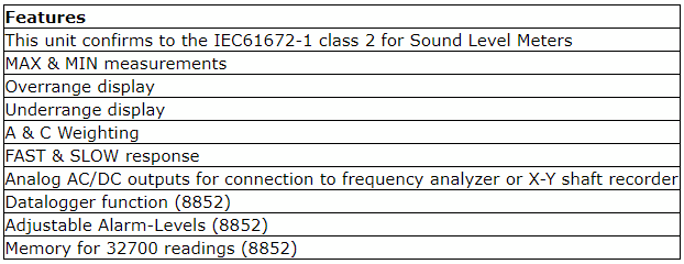 Standard applied: IEC61672-1 Type 2, ANSI S1.4 Type2