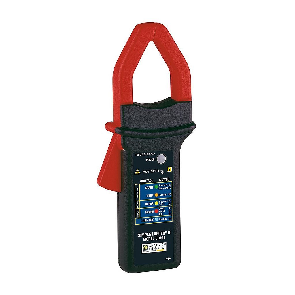 The Simple Logger II family of data loggers is a product line benefiting from advanced design and an excellent quality/price ratio when their specifications and functions are taken into account. Self-contained and equipped with protected connections, the CL601 clamp is ideal for supervision of machine loads, HVAC diagnostics, load representation, electrical troubleshooting, etc.