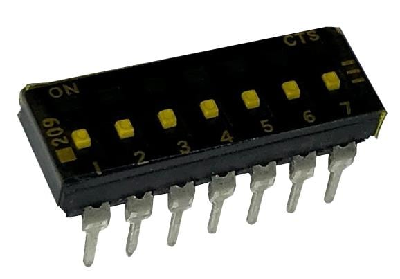 CTS Electronic Components 209-7LPSTFD DIP Switches THROUGH HOLE, GOLD DIP SWITCH, 7-POLE, LOW PROFILE ACTUATOR, BOTTOM SEAL, TAPE SEAL, OFF, STRAIGHT TERMINAL FORM, TUBE PACK