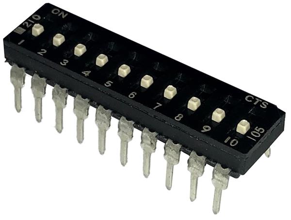 CTS Electronic Components 210-10MSFD DIP Switches THROUGH HOLE, GOLD FLASH DIP SWITCH, 10-POLE, MEDIUM ACTUATOR, BOTTOM SEAL, OFF, STRAIGHT TERMINAL FORM, TUBE PACK