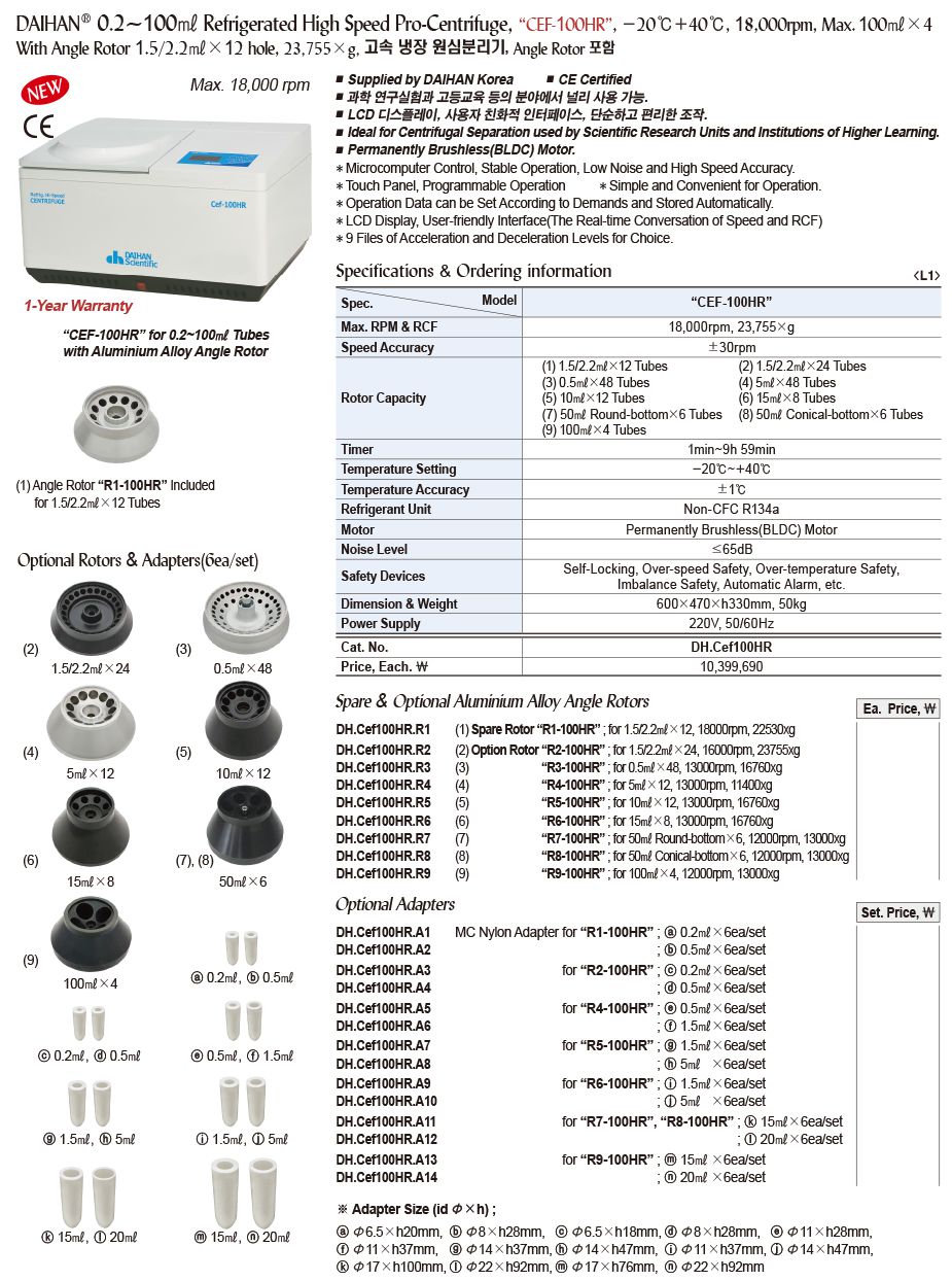 Max. RPM & RCF: 18,000rpm, 23,755×g