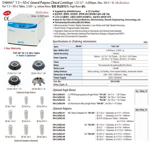 DaiHan CEF-50 1.5~50㎖ General Purpose Clinical Centrifuge (4,000rpm, 2,500×g) | EMIN.CO.ID