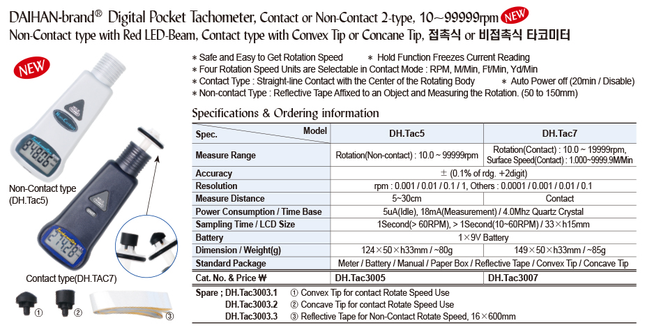 DaiHan DH.Tac3007 Digital Pocket Tachometer (Contact Tachometer) | EMIN.CO.ID