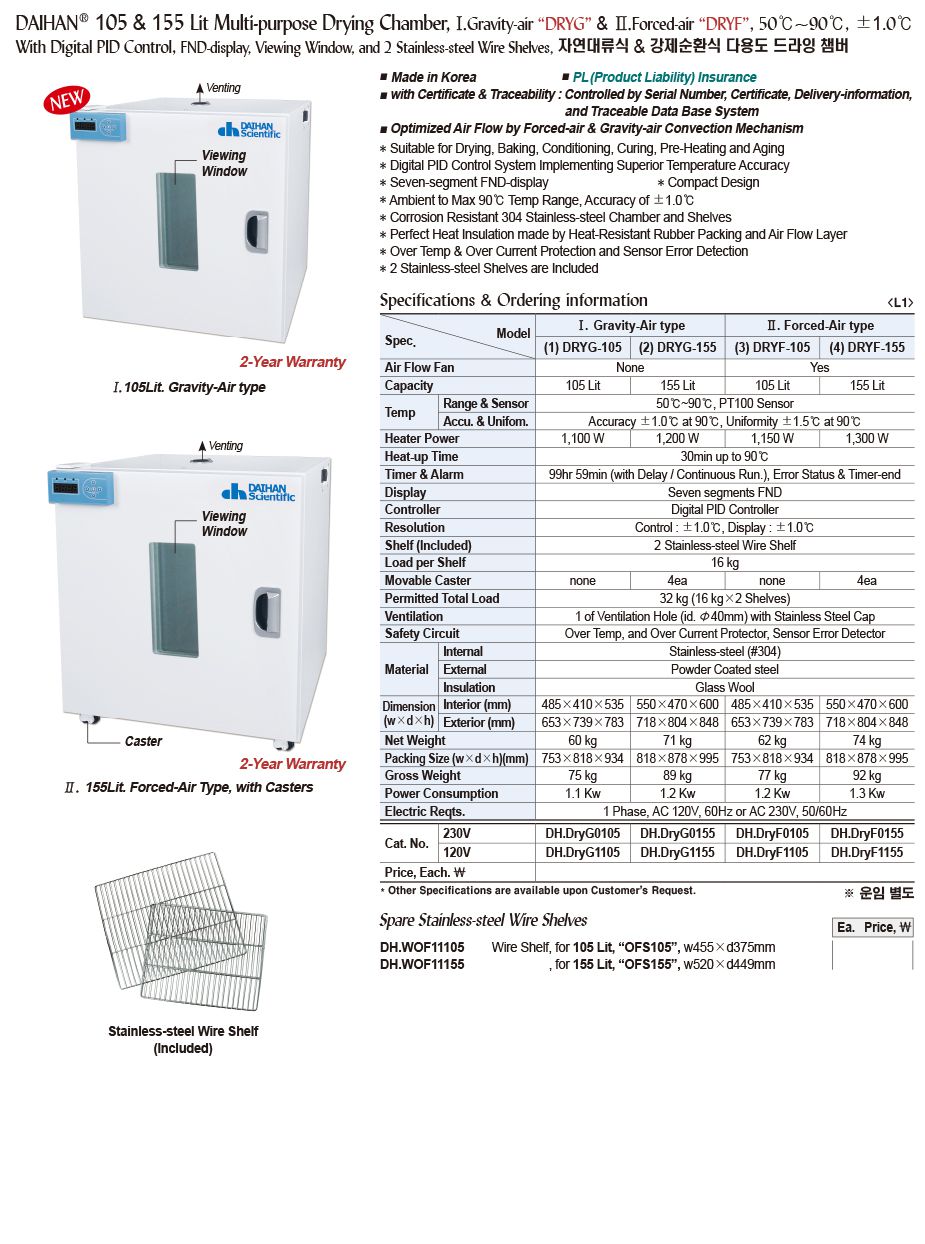 - Resolution Control : ±1.0℃, Display : ±1.0℃