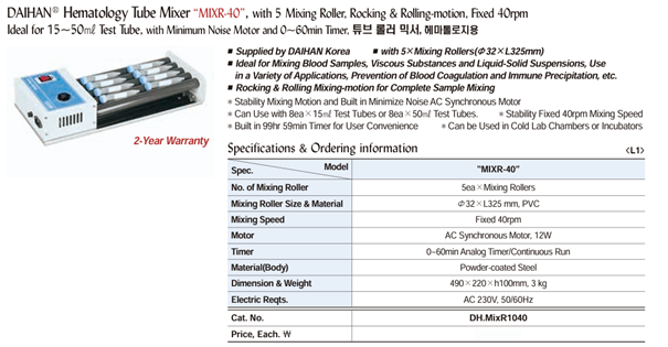 DaiHan MIXR-40 Hematology Tube Mixer (5ea×Mixing Rollers, 40rpm) | EMIN.CO.ID