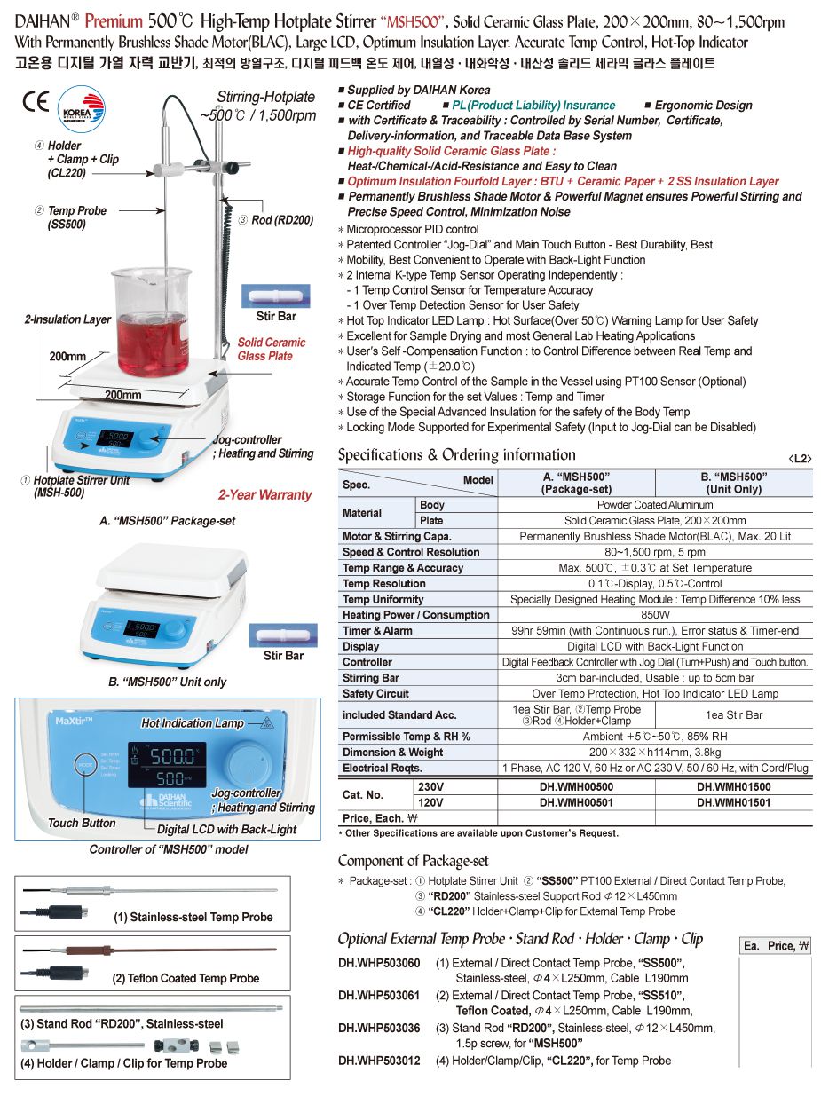 included Standard Acc: 1ea Stir Bar. Temp Probe .Rod. Holder+Clamp
