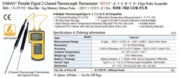 DaiHan T9214T Portable Digital 2-Channel Thermocouple Thermometer | EMIN.CO.ID