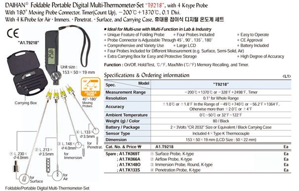 DaiHan T9218 Foldable Portable Digital Multi-Thermometer-Set | EMIN.CO.ID