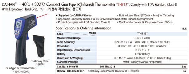 DaiHan THE13 -40℃+500℃ Compact Gun type IR(Infrared) Thermometer | EMIN.CO.ID